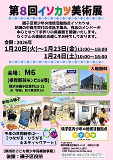 そこが行っているイソカツ美術展が根岸駅前モンビル6階「Live Box M6」にて開催されています。(無料)